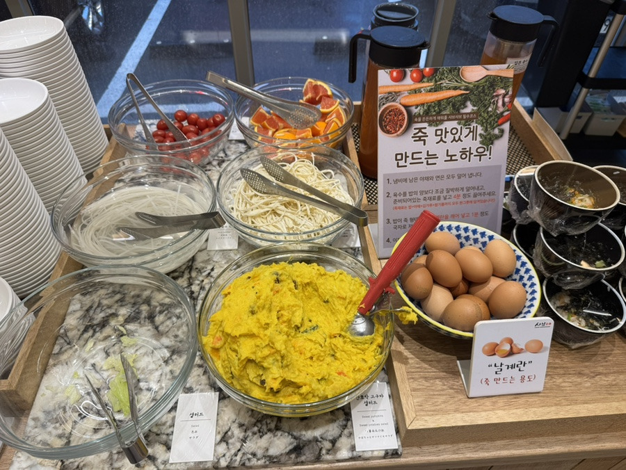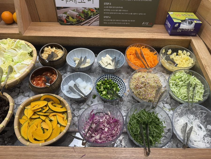 샐러드바의 음식이 약간 늦고 종류가 그렇게 많지는 않지만