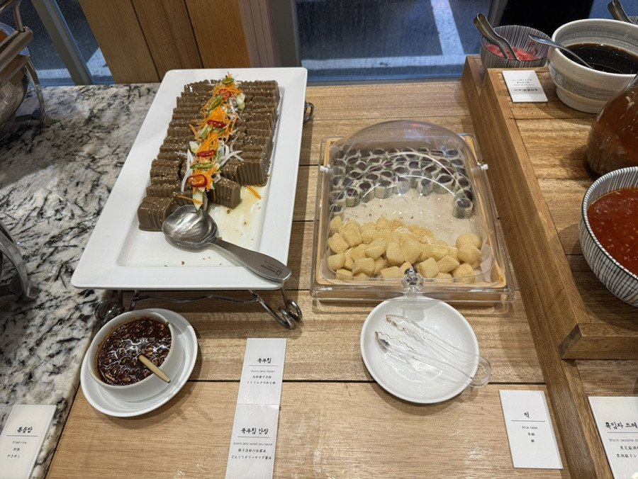 다양한 음식들도 있었어요 사진은 도토리묵과 떡밖에 없지만