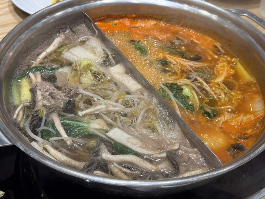 필수로 샤브샤브 육수 2가지를 선택해야 하는데
