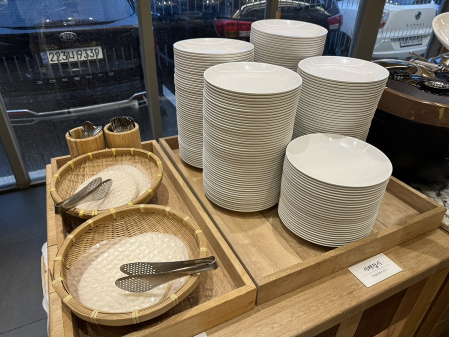 뒤편에는 라이스페이퍼와 접시가 있는데