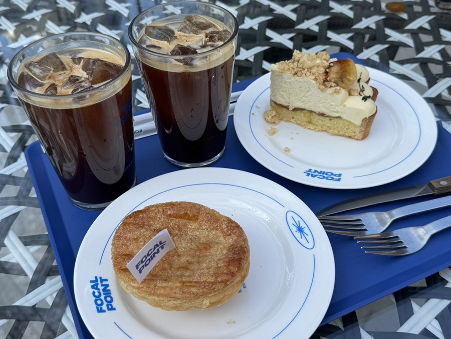 아이스 아메리카노 2잔, 애플파이, 바나나 카라멜 파이 주문했어요!