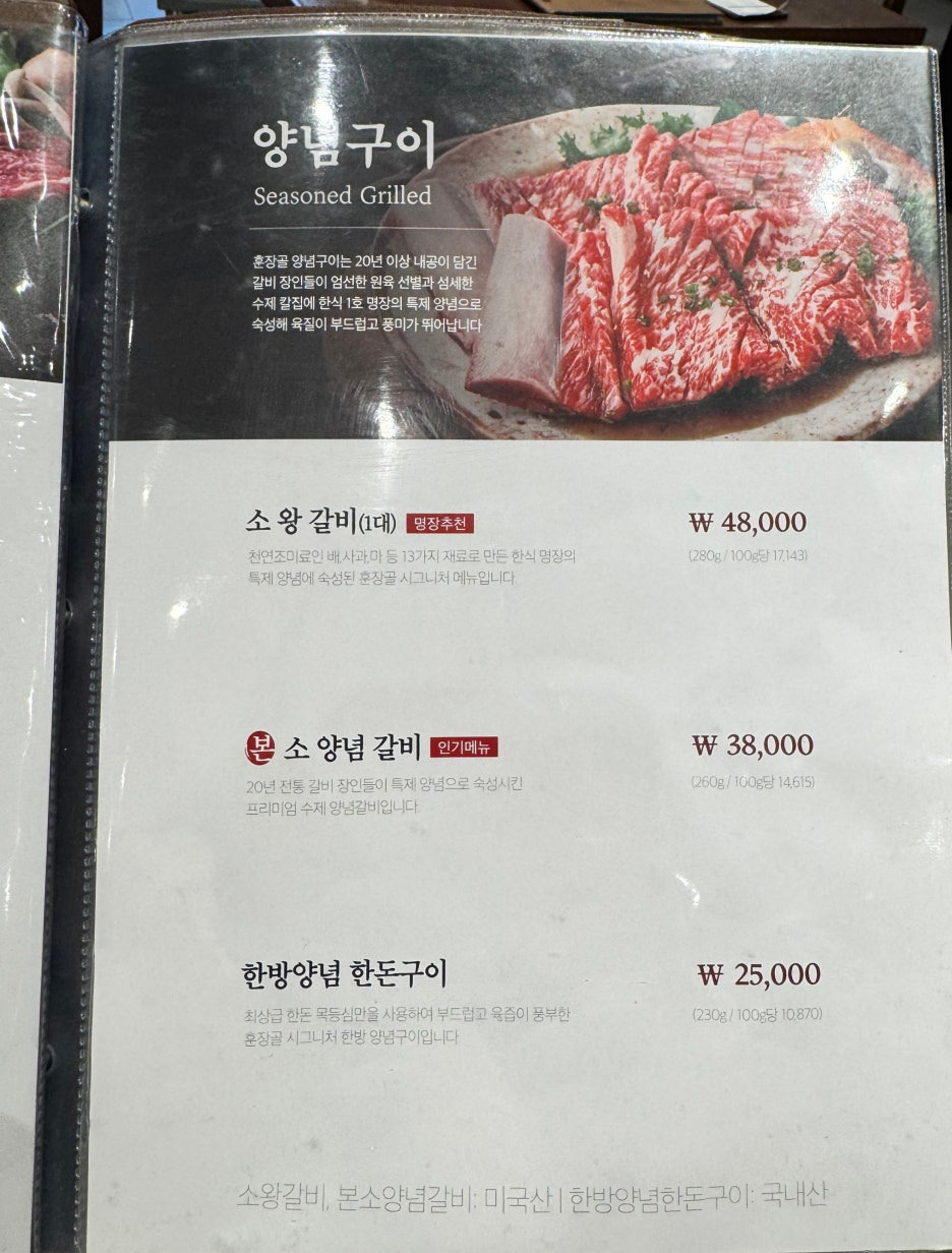 소 양념갈비 38,000원 2인