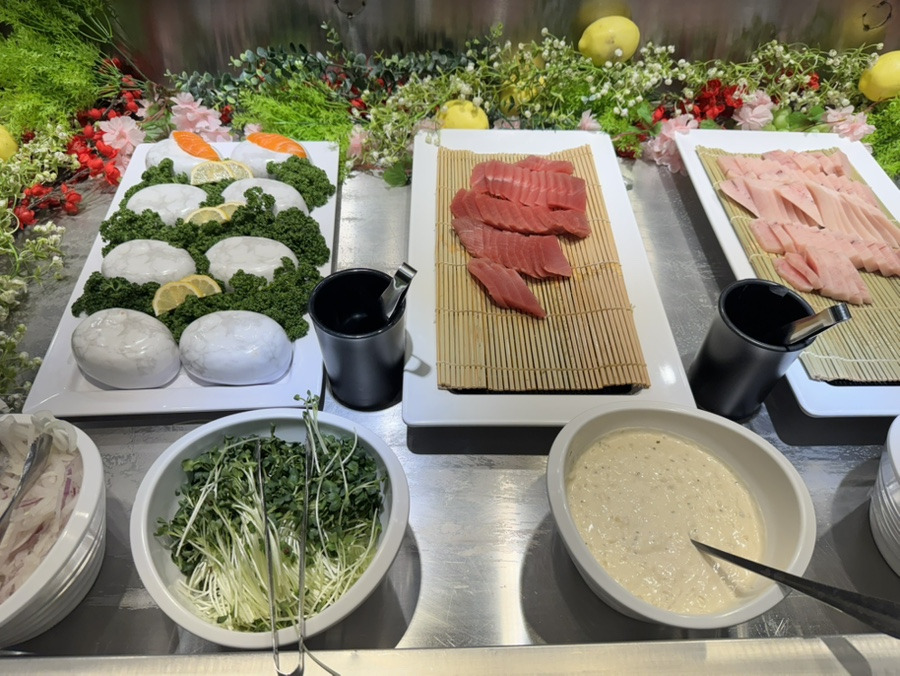 첫 접시는 스시로 가득 채웠어요!! (이제는 못 먹는 현실..ㅠㅠ)